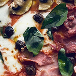 Sauce tomate, mozzarella fior di latte, jambon, artichauts, olives, Champignons