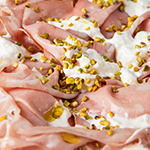 mozzarella fior di latte, Mortadella DOP, Pistacchi di Bronte, stracciatella, Huile d'olives EVO