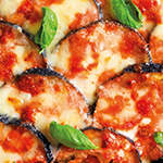 Sauce tomate, mozzarella fior di latte, aubergine, polpette